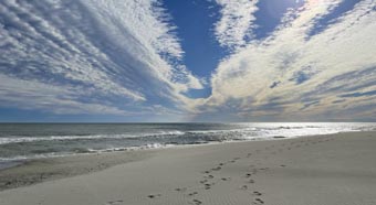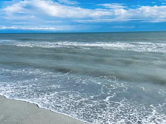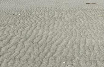 浜辺の砂はとても細かく、歩くと「キュッ・キュッ」と鳴き砂のような音がします。