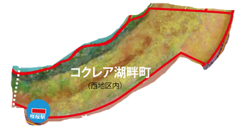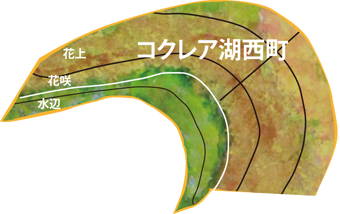 湖畔町はコクレア湖を東西に長く包むように伸びる、細長い町です。西地区には一丁目〜七丁目が属します。