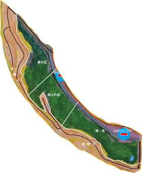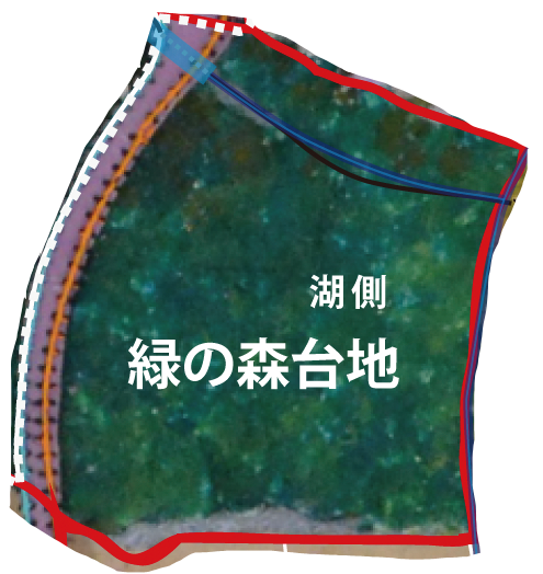 緑の森台地(湖側)は、湖へ向かってすり鉢状に緩やかに湾曲した地形で、