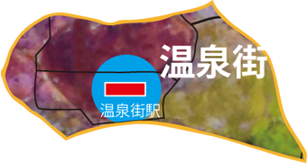 王国循環路線と温泉街ラインの両方を利用できる地区です。