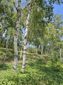 山の中央部分には大きなカルデラがあり、上へ行くほど高山植物や白樺が訪れる人の目を楽しませてくれます。