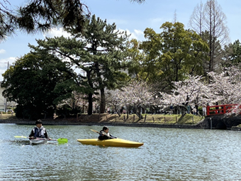 赤煉瓦の街との境には桜並木が続き、春にはとても美しく桜が咲きそろいます。
